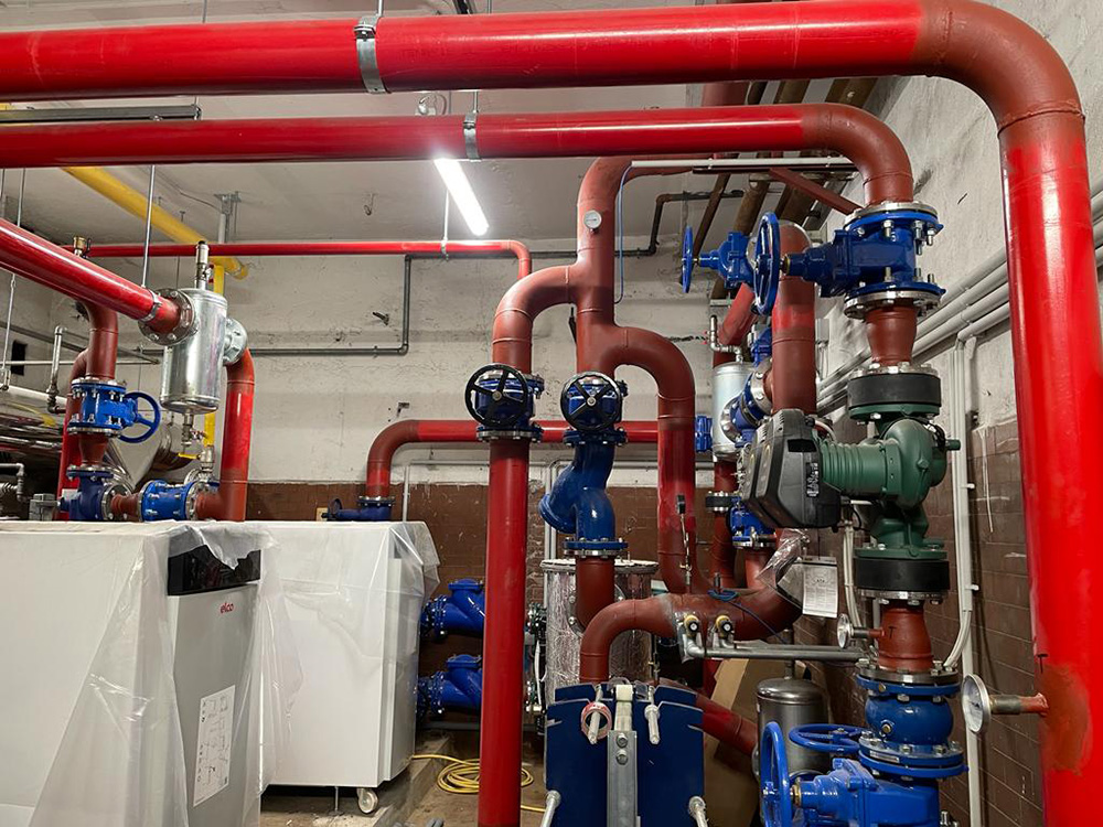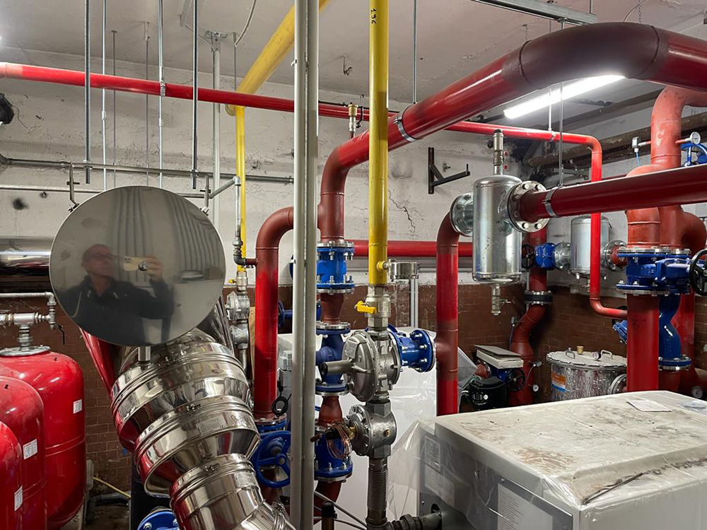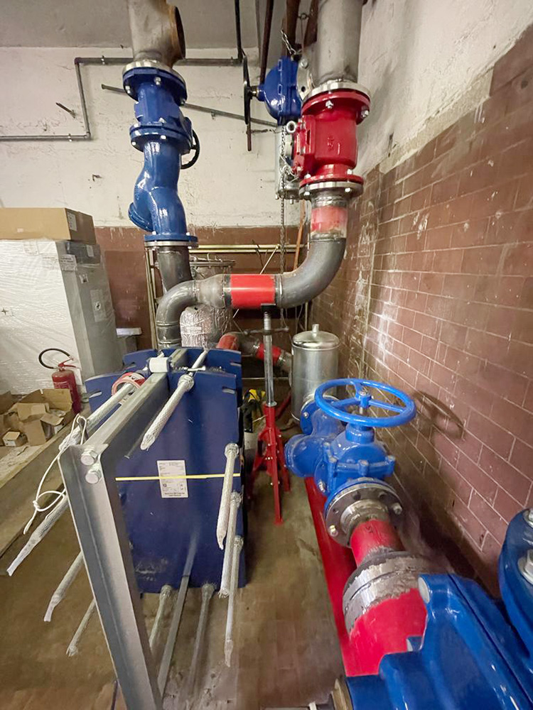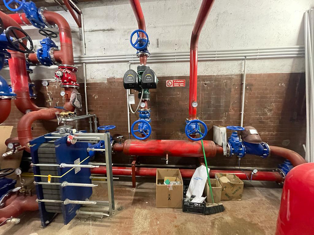 Abbiamo riqualificato l’impianto con un nuovo sistema ibrido da circa 600 kW dotato di 2 caldaie a condensazione premiscelate in cascata e pompa di calore aria acqua. La pompa di calore è stata allacciata ad un accumulo inerziale della capacità di 2000 litri.