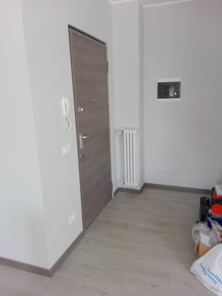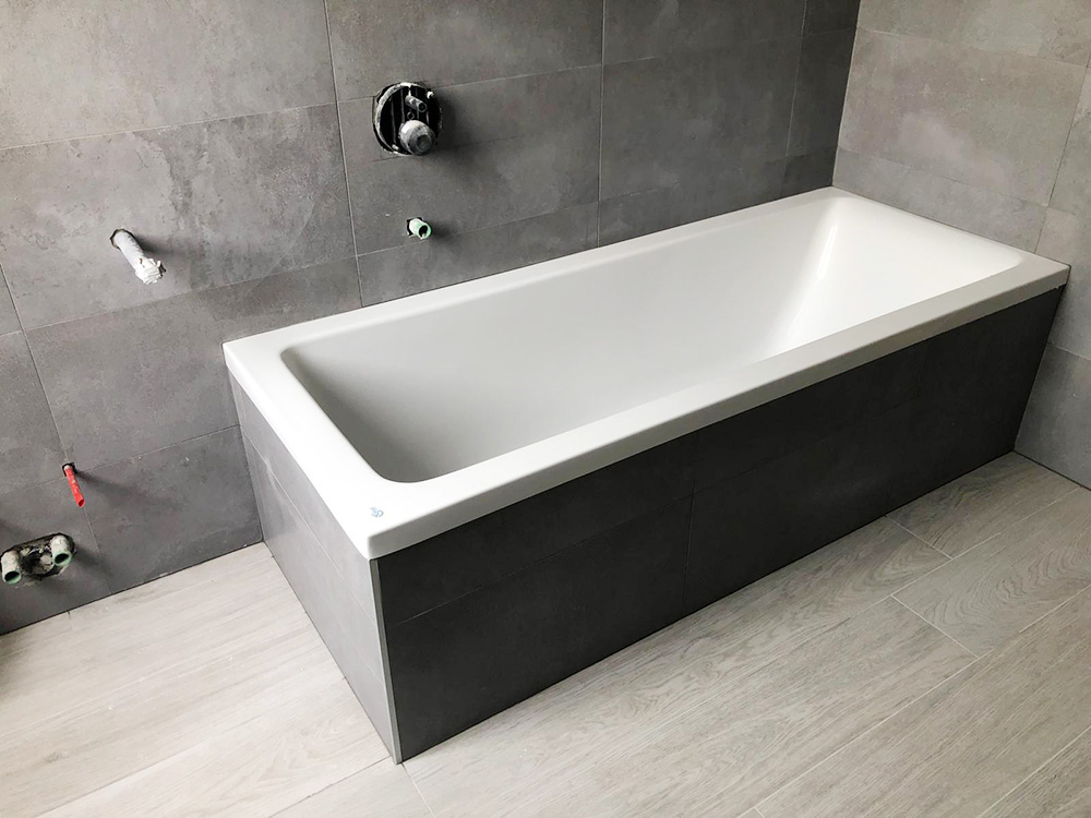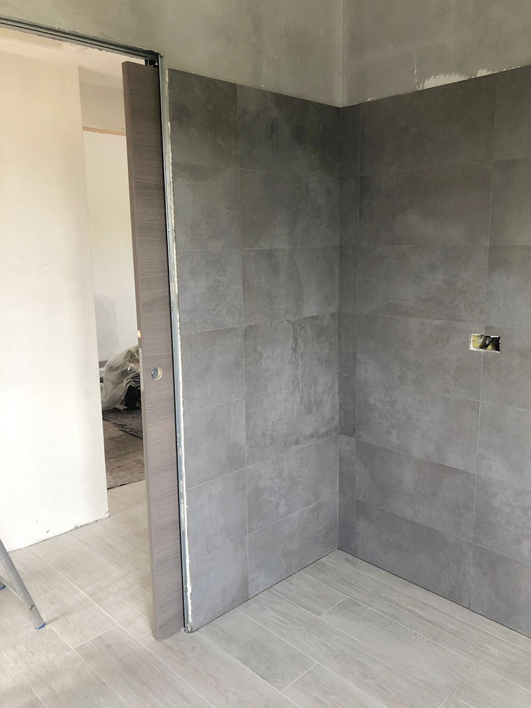 Abbiamo ristrutturato il bagno, previa demolizione di una parete per rendere l’ambiente più ampio e fruibile. Sono stati rifatti ex novo tutti gli impianti idraulici ed elettrici, compresa la predisposizione per l’impianto di allarme. Le finiture sono state completate con nuove pavimentazioni ad effetto parquet e ribassamenti in cartongesso con faretti ad incasso a Led.